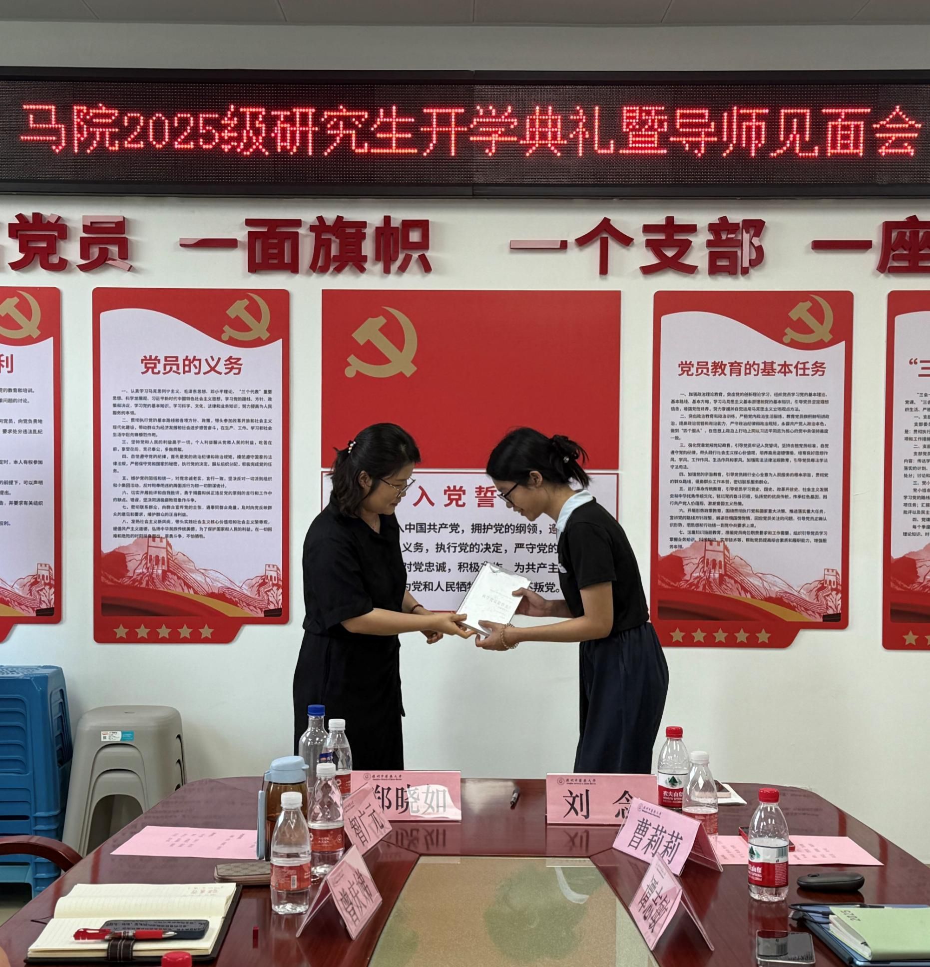 会议由龚建文书记致辞。他强调指出,学院已初步构建起“马克思主义理论—医学人文—科技哲学”三位一体的学科体系与创新生态,学科布局持续优化,整体实力明显增强。他强调,学院始终将研究生教育置于学院发展的重要位置,今后将进一步整合学术资源,系统修订研究生培养方案,着力打造精品读书会等高水平学术平台,持续创新培养机制,全面提升研究生的学术创新能力和理论阐释水平。龚书记勉励同学们要恪守扎实的治学路径,广泛阅读经典、深入独立思考、积极投身实践,努力融通中西学术脉络,深刻把握“两个结合”特别是与中医药文化相结合的重大意义。
