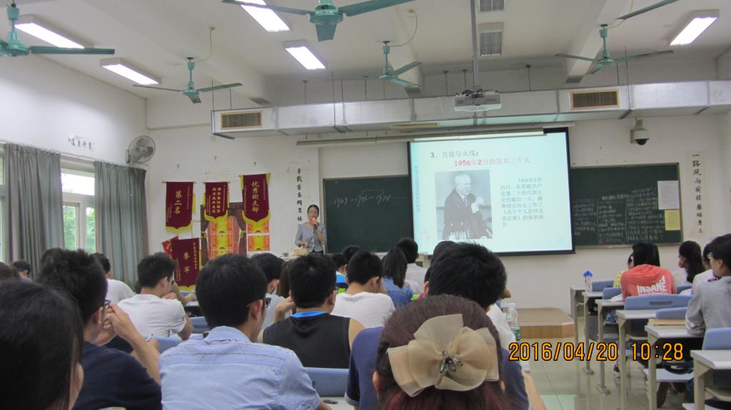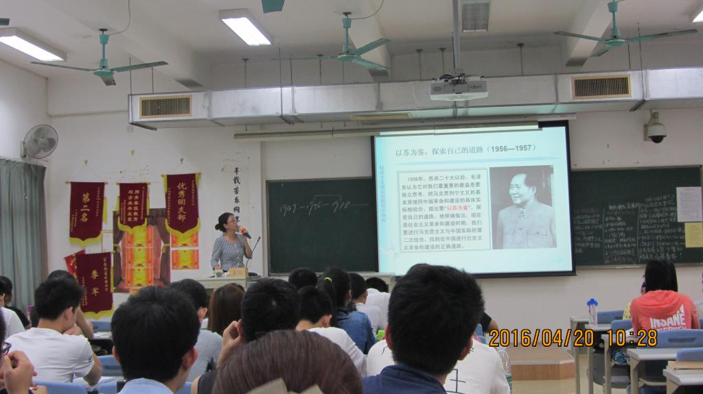 2016年4月19日(星期三)上午,我院“毛泽东思想和中国特色社会主义理论体系概论”教研室武香兰副教授主讲本学期的第一场教学观摩课。学院领导、没有上课任务的老师参加了观摩课。