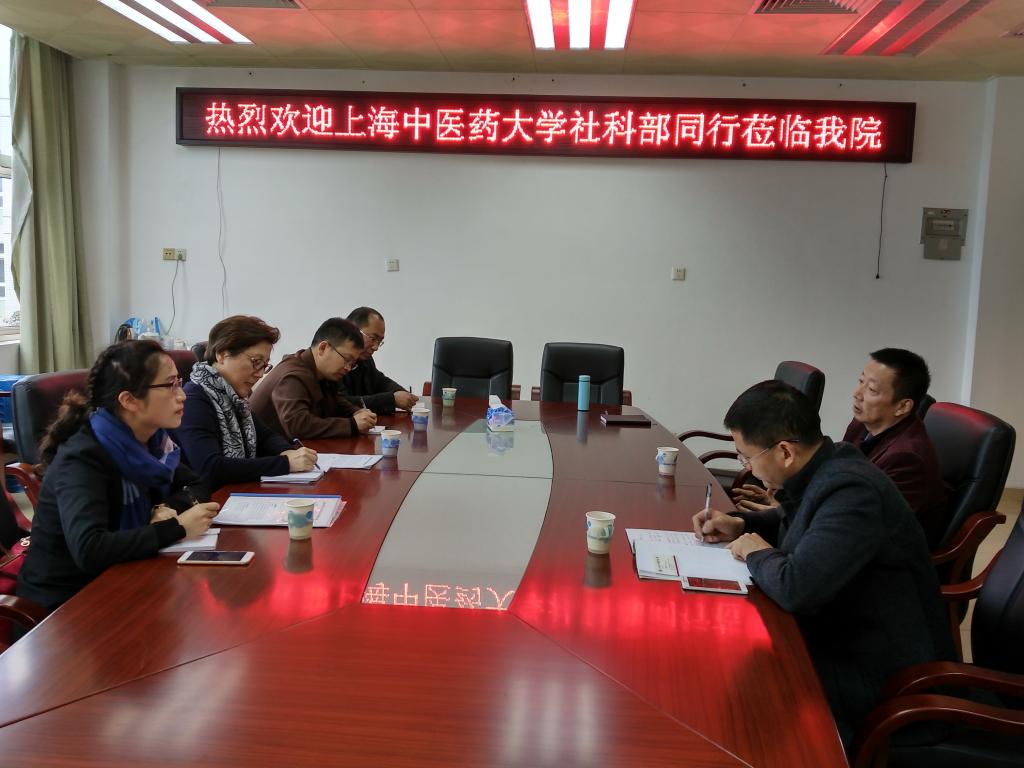 2017年3月9日上午,上海中医药大学社科部来我院进行交流学习。我院院领导、教研室主任参加了会议。座谈会上,李悦书院长代表学院对上海中医药大学亓曙冬一行4人的到访表示热烈欢迎。双方与会人员就学院的建设方案、机构设置、学科点的建设等方面进行了交流和讨论。