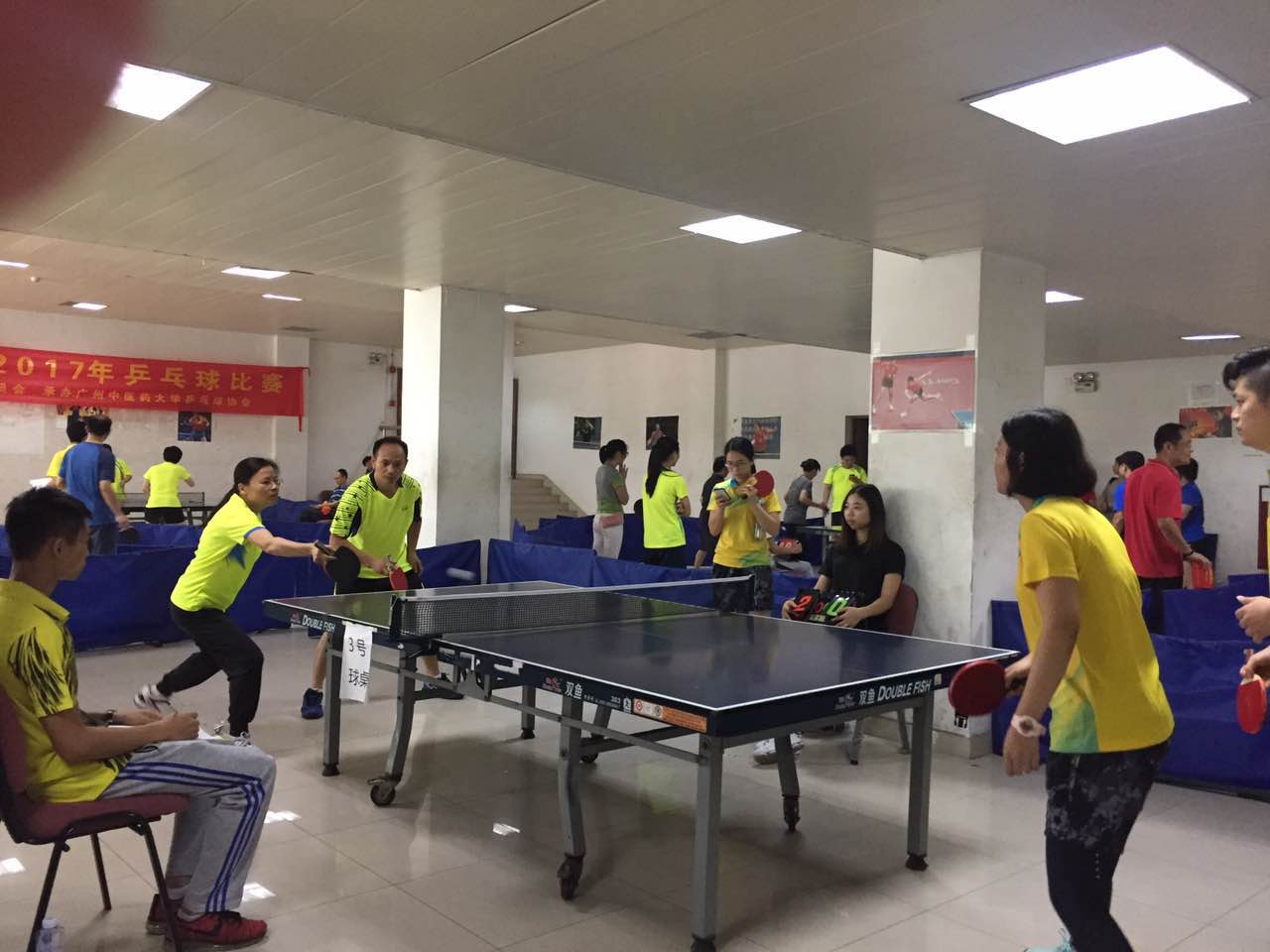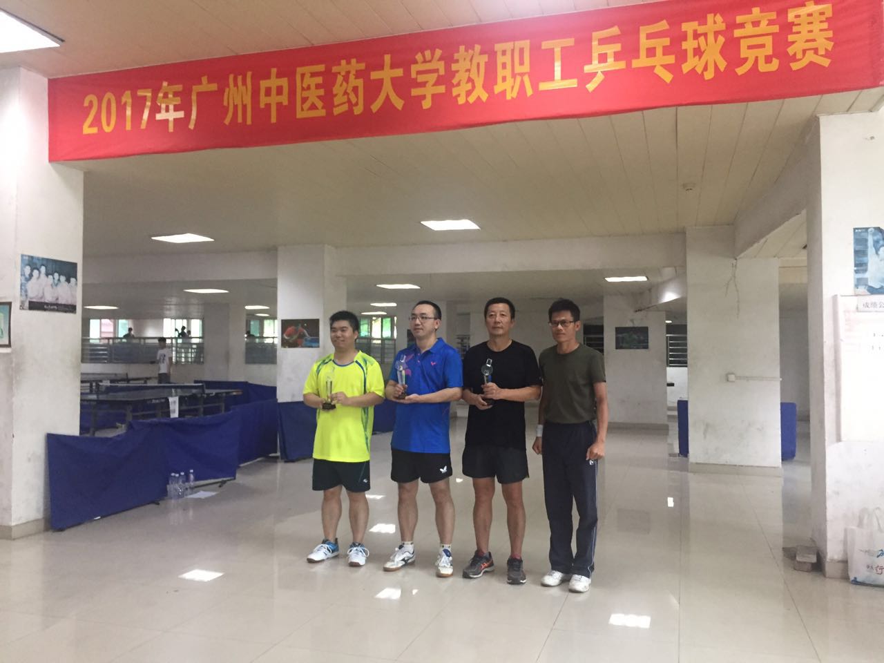 2017年5月26日,由学校工会主办、体育健康学院协办的教职工乒乓球竞赛在大学城校区大会堂一楼乒乓球活动室举行。我院由袁毓玲书记领队,李悦书院长参加男子单打项目,刘秦民老师和邓小红老师参加混合双打项目,李慧芳老师和廖津老师参加女子单打项目。经过激烈角逐,李悦书院长获得男子单打第三名,刘秦民老师和邓小红老师获得混合双打第四名。我院所有参赛运动员都发挥出了自己的最高水平。
