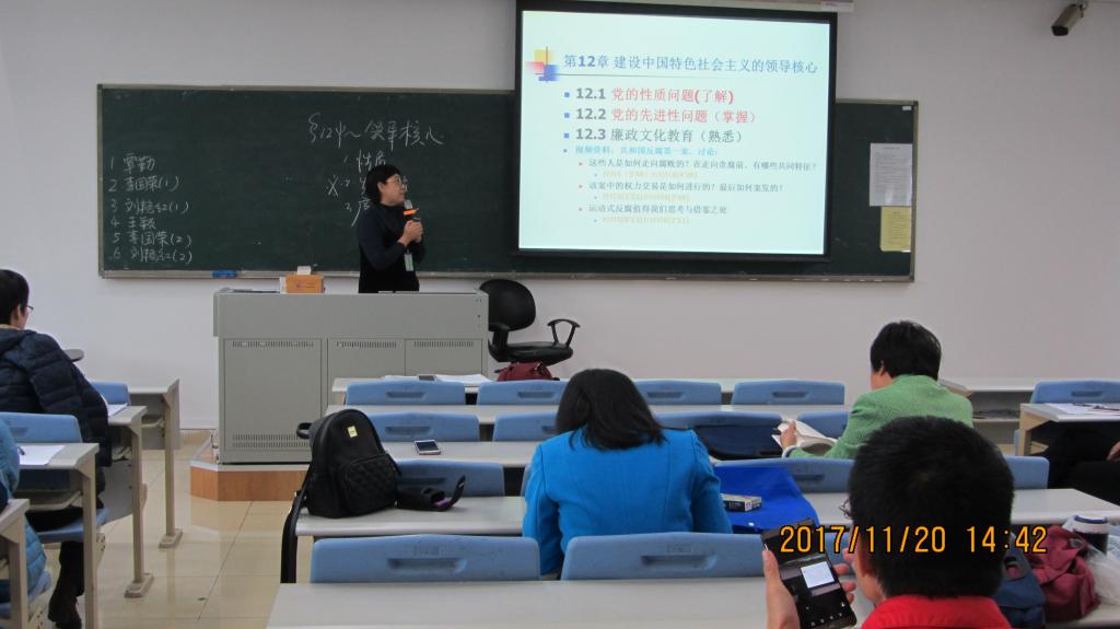 11月20日下午,我院刘艳红老师试讲毛泽东思想和中国特色社会主义理论体系概论、商务英语两门课程;李国荣老师试讲马克思主义基本原理和中国古代哲学两门课程;覃勤老师试讲思想道德修养与法律基础课程;袁毓玲老师试讲毛泽东思想和中国特色社会主义理论体系概论课程;屈志勤老师试讲中国古代哲学课程。