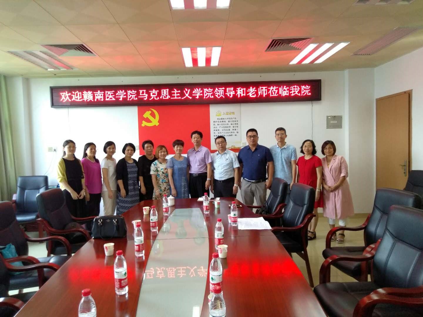 2018年06月29日上午,赣南医学院437必赢会员中心教师一行3人来我院进行交流学习。我院马克思主义原理教研室和思想道德修养与法律基础教研室老师参加了会议。座谈会上,双方就课程建设、教研室建设、教学管理等方面展开了讨论与交流。院校之间的交流学习,既是对我院教研工作取得成绩的充分肯定,同时他们带来的宝贵经验对我院的学科建设起到良好的推动作用。会后,相关的老师根据他们授课课程分别到教研室查阅相关课程资料,最后合影留念。