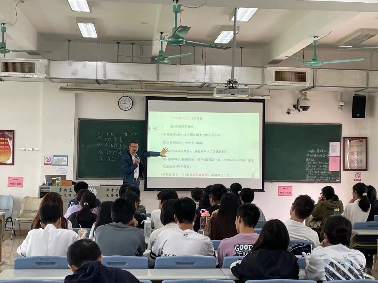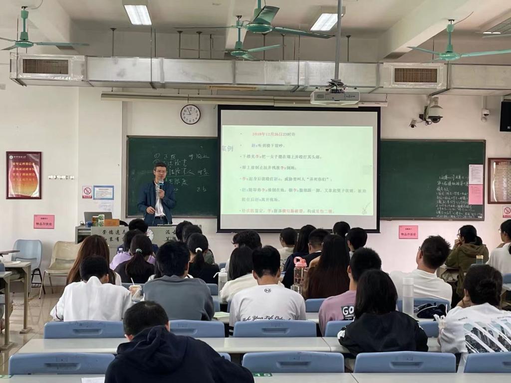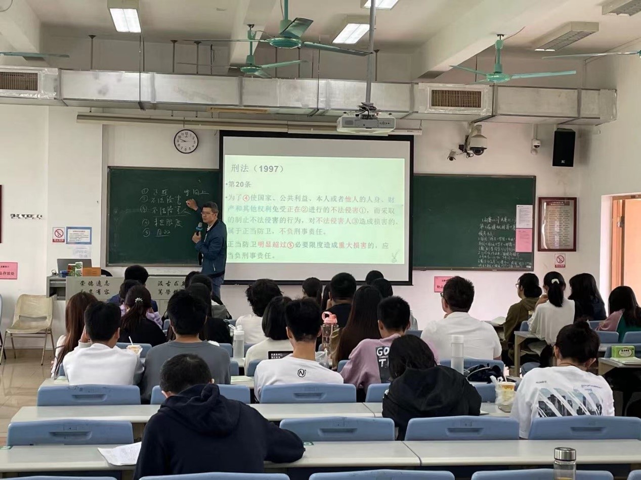 王玉学教授借助雨课堂等教学软件,对正当防卫的基本内涵与构成要件等内容进行了详细讲解,运用案例分析、系统阐述、突出重点等方式,教学过程环环相扣,最终落脚于社会主义核心价值观的“知行合一”,实现了教材理论与社会现实相相结合,做到了知识传授与价值引领相统一,营造了师生共同探索的互动式教学情境,课堂氛围活跃。此次教学公开课,对于学院教师提高课堂教学质量发挥重要示范作用。