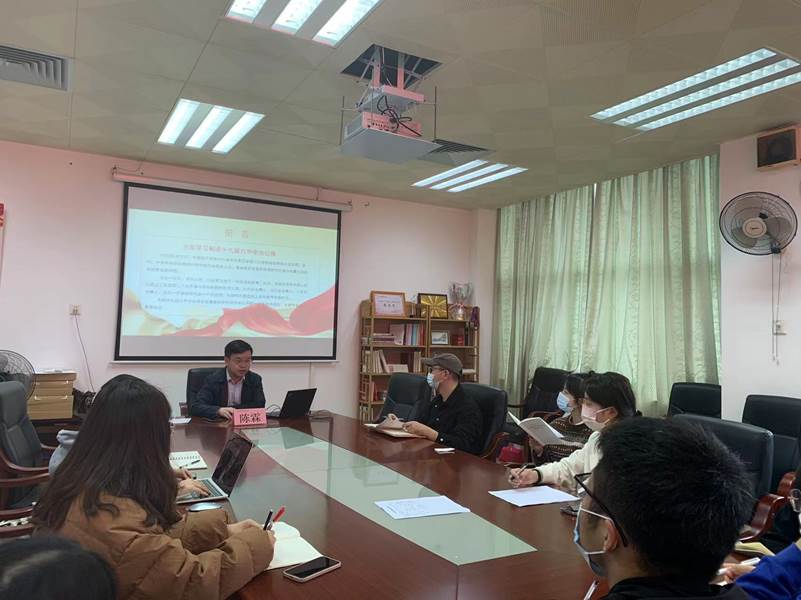 3月24日上午,在人文楼403室,马院党总支书记陈霖为学院全体研究生讲授新学期“思政第一课”,主题为学习党的十九届六中全会精神。