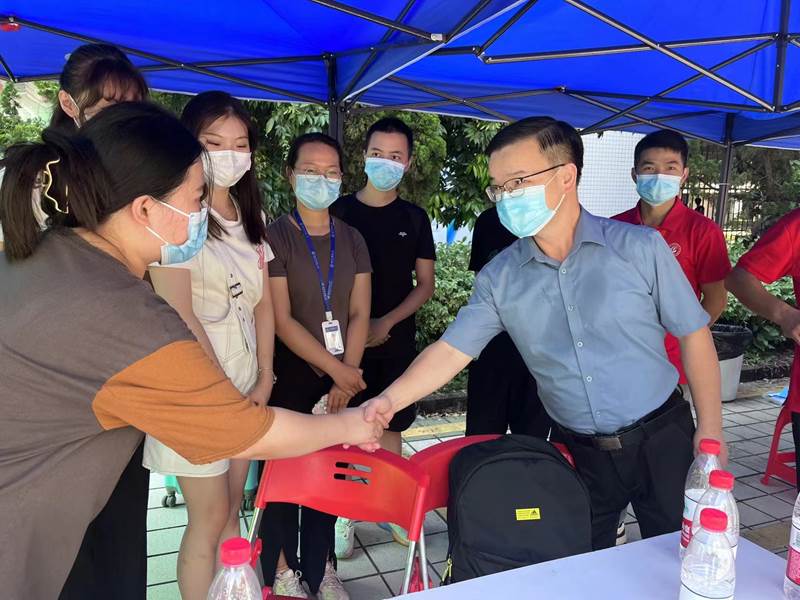 陈霖书记指出,同学们来到新的学习环境会有到一系列的问题和困惑,学院要承担起帮助学生走出困难的责任,履行相关义务。陈霖书记与同学们一一握手,并表达问候。
