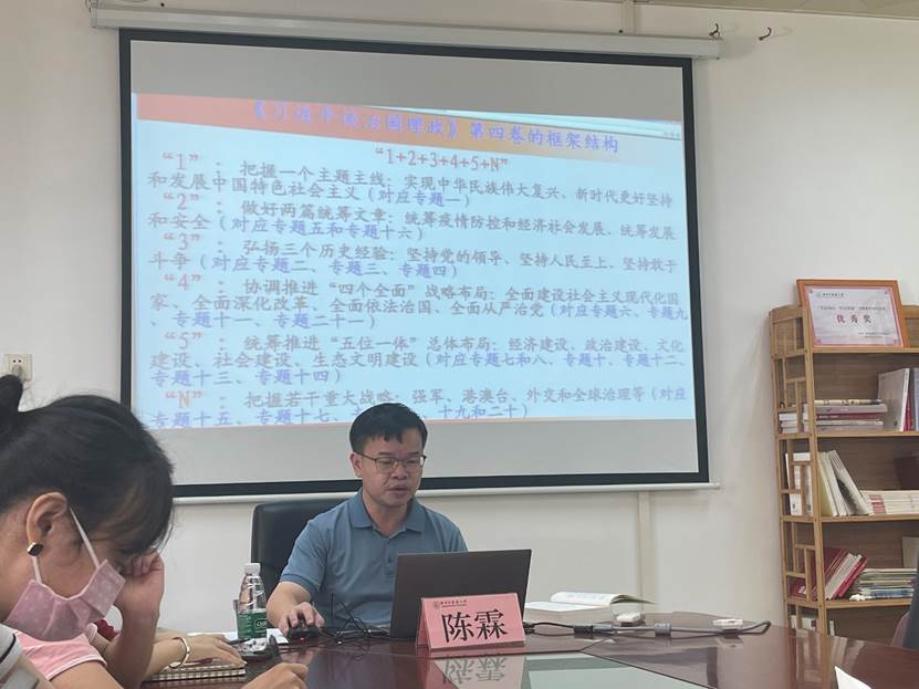 2022年9月30日上午,在人文楼403室,437必赢会员中心党总支书记陈霖为学院全体研究生讲授新学期“思政第一课”,主题为“《437必赢会员中心谈治国理政》第四卷的学习思考”。