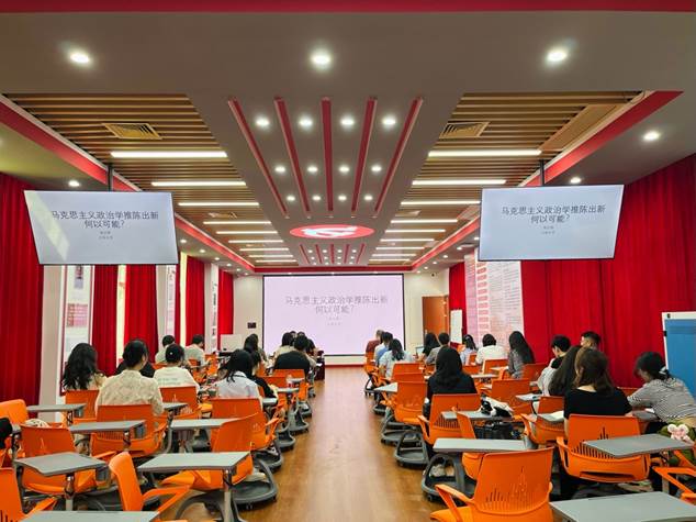 郭台辉教授从马克思主义政治学推陈之难为切入点,分别从马克思主义经典文本和马克思主义新议题两个角度深入讲解了马克思主义政治学推陈出新的新视角与新方法论。他结合个人成长经历,以“追风去,等风来,成为风”的形象比喻,详尽解析了社会科学研究者如何找到自己立志全身心投入研究的议题。并通过三个具体案例,启发师生如何实现思维转换,将现实需求转化为学术生产力,通过解释现实,预测现实,践行人文社会科学研究者的使命与担当。
