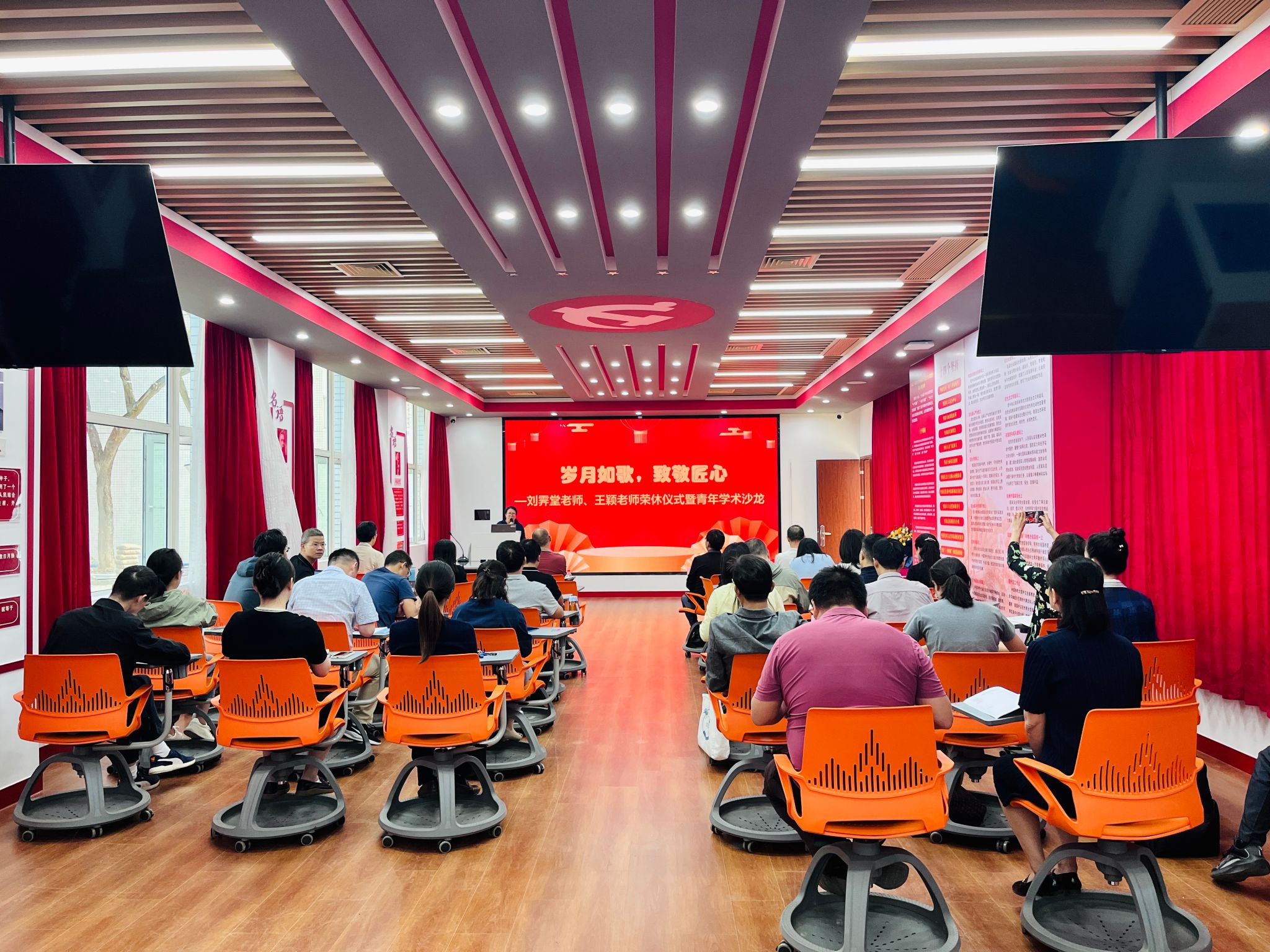 2024年10月24日上午,在人文楼虚拟仿真思政课体验教学中心,437必赢会员中心成功举办刘霁堂老师、王颖老师荣休仪式暨“岐黄·博思”青年学术沙龙第二期,仪式由曾庆娣副院长主持,学院党委书记龚建文、副院长林志彬和全体教工参加。