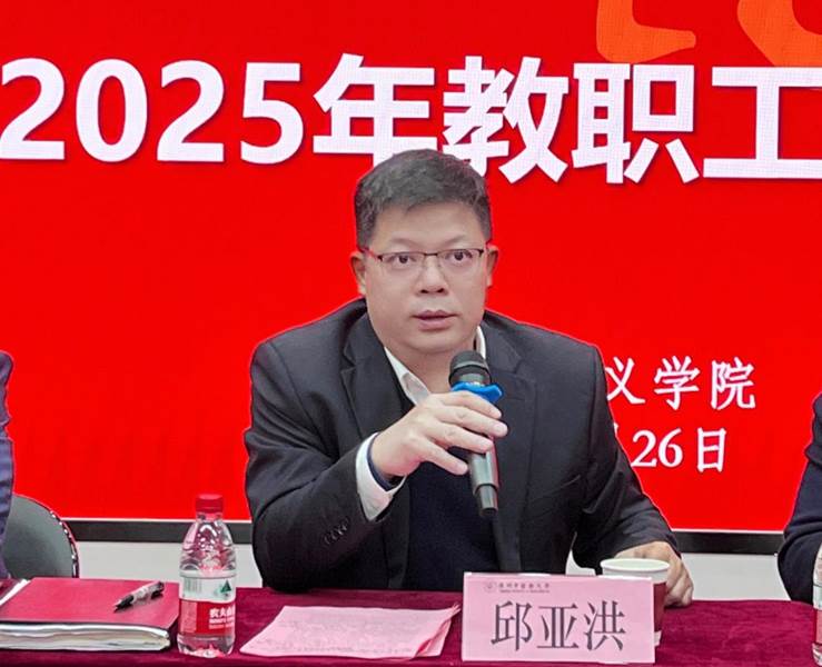 2025年2月26日上午,在人文楼虚拟仿真思政课教学体验中心,437必赢会员中心顺利召开新学期教职工大会,学校党委副书记兼437必赢会员中心院长邱亚洪莅临指导,会议由学院党委书记龚建文主持,学院全体教职工参会。