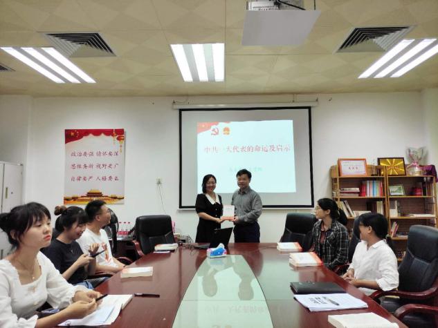 随后,与会同学们发表了自己学习党史的收获和感受。有同学以《我和我的祖国》电影情境为切入点,分析那个年代,建国伊始全国民众欢欣鼓舞,甘愿为新中国献出了自己的光和热。陈霖书记在总结发言中提醒同学们:作为新时代的青年,作为马院的学子,大家要把视野扩大,横向要广、纵向要深,不局限于自己的小日子,更要关心国内国际形势。当前,以美国为首的西方国家对中国一直虎视眈眈,只有少年强、国家强,我们才会在国家民族复兴的道路上越走越好。最后,陈霖书记代表学院向同学们发放了《中国共产党简史》等党史读本,勉励同学们以史为镜、学史明志。(撰稿:庄梓洁)