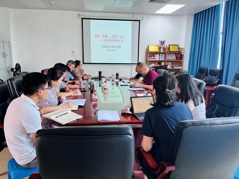 会议第二项议程为曾庆娣副院长作省委党校理论研修汇报。她以“学问‘有根’,担责‘有心’——省委党校理论研修汇报”为主题,从“开篇·感”“温故·知新”“理论·扎根”“使命·守心”四个方面结合课堂生动案例展开讲解,并谈学习感悟。她表示,理论要扎根现实,要打破二元对立思维方式,不是从理论看实践,实践只是理论观照的对象,也不是从实践看理论,理论被归化入实践之内而丧失自身,将生命价值渗透其中,实现相融共生。