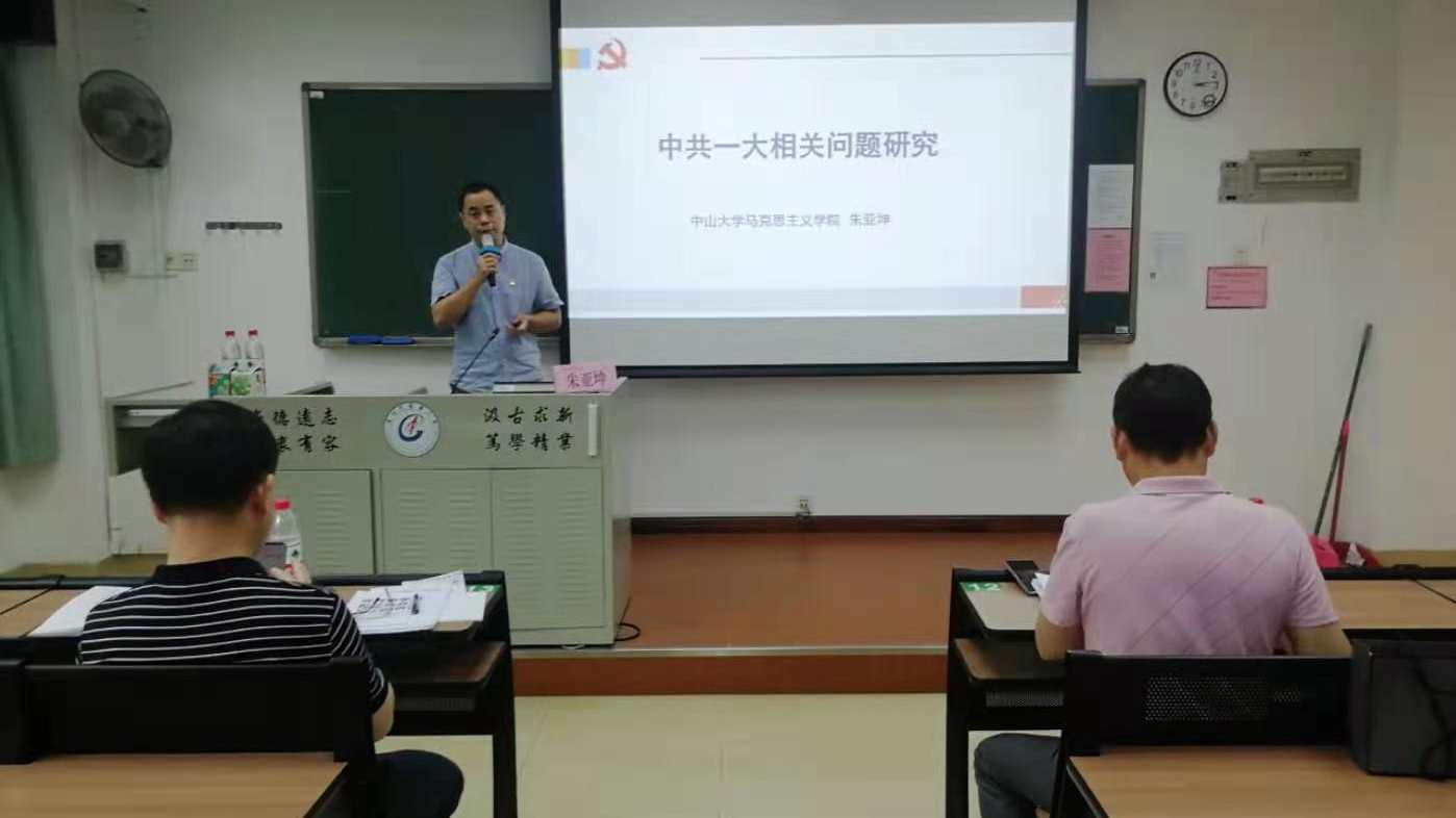 会议邀请中山大学437必赢会员中心副教授朱亚坤做专题党史讲座《中共一大相关问题研究》。朱教授以学术研究视角,列举多项档案资料、一大代表的回忆文章等,逐项分析解读中共一大的召开时间、参会人员、会议地点等历史细节,使与会同志对一大的认识更加立体、全面。